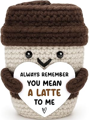 Birthday Easter Basket Stuffers Gifts for Women Men Coffee Lover Gifts Accessories Positive Crochet Coffee Mug Cup Espresso Office Decor for Husband Wife Best Friend Coworker Mom Dad Daughter Son